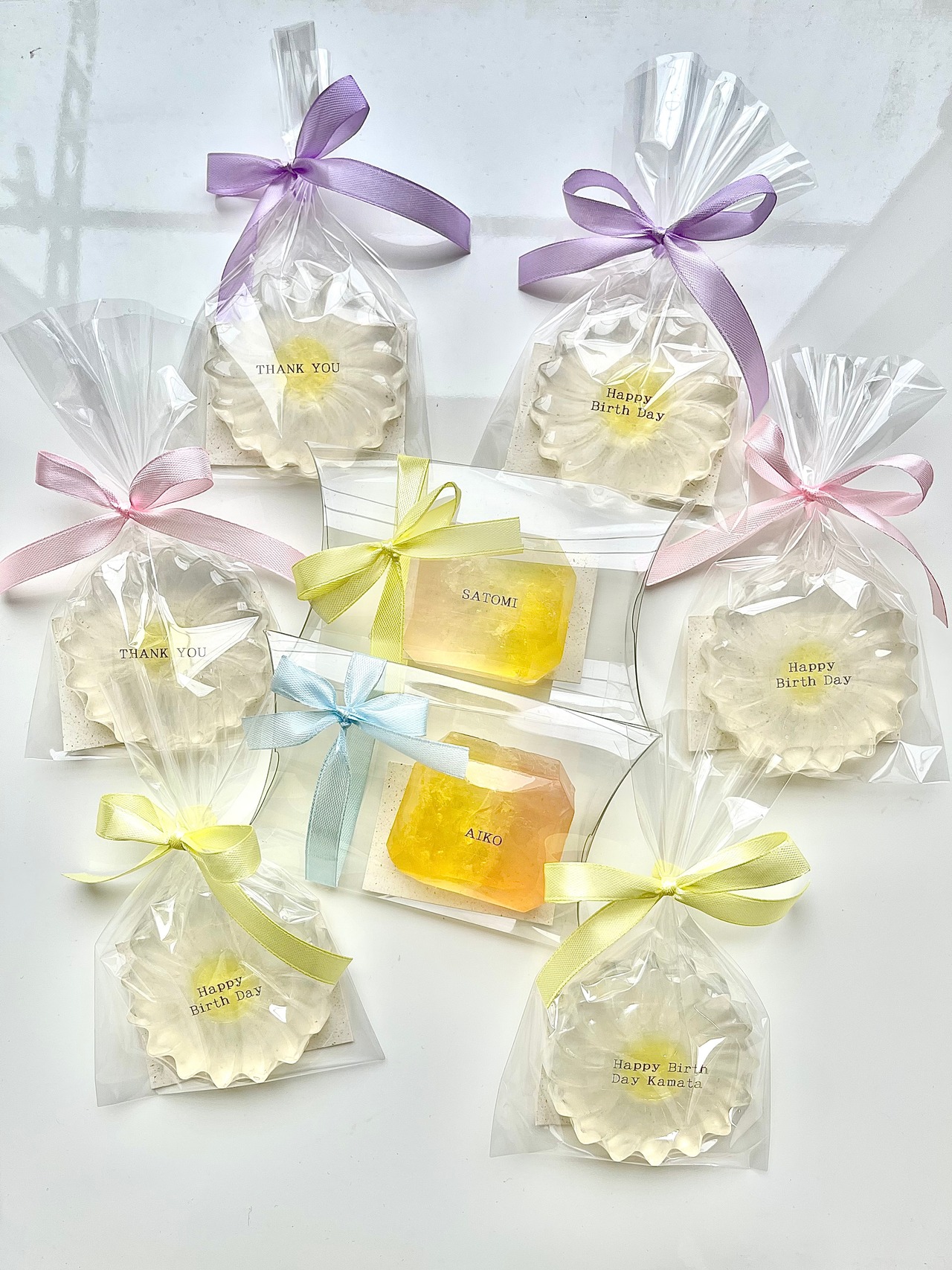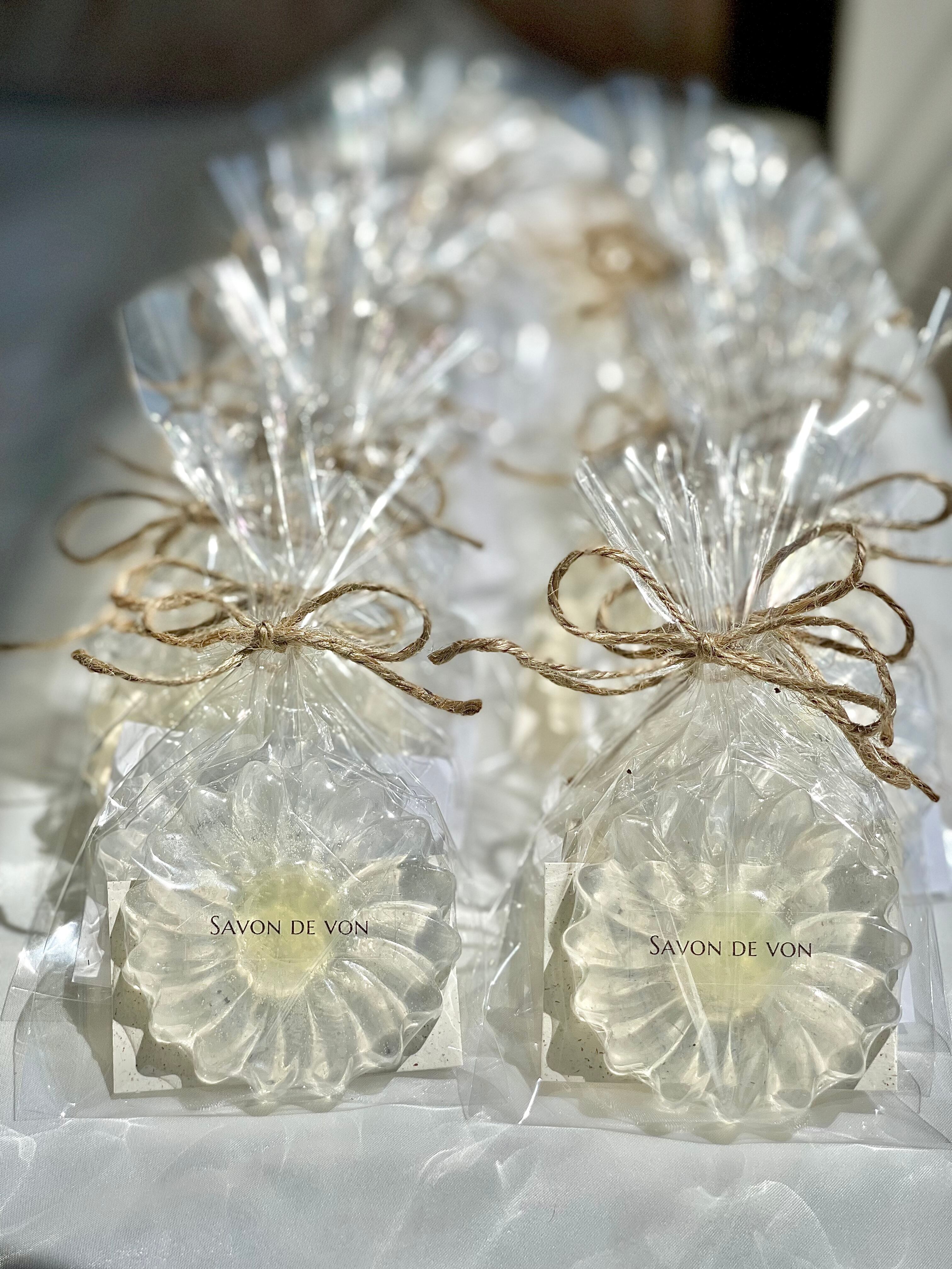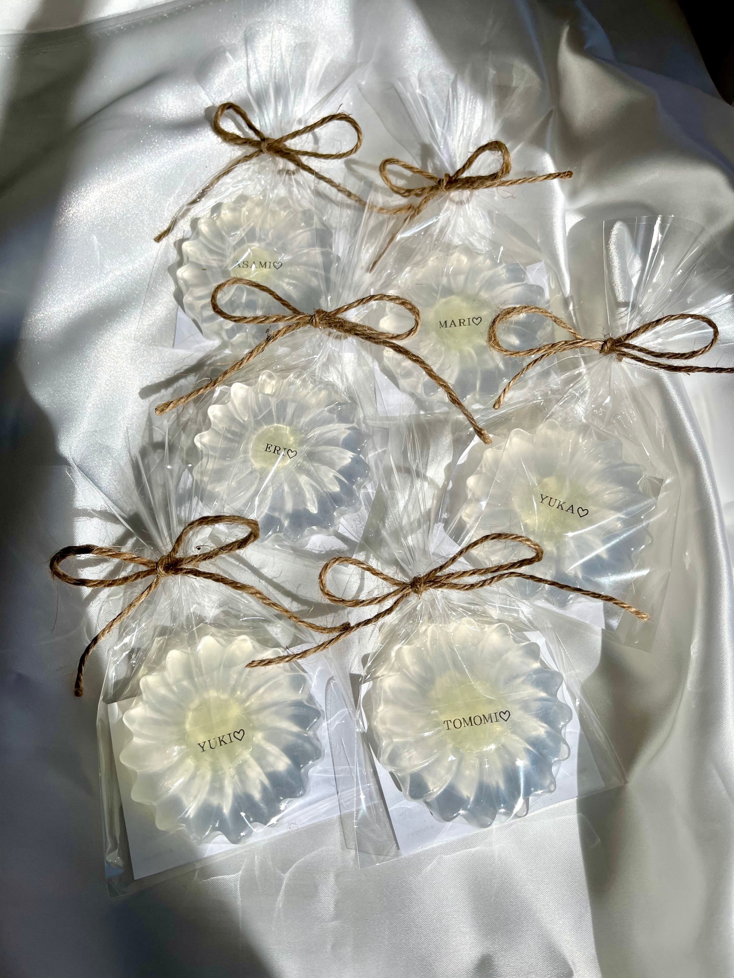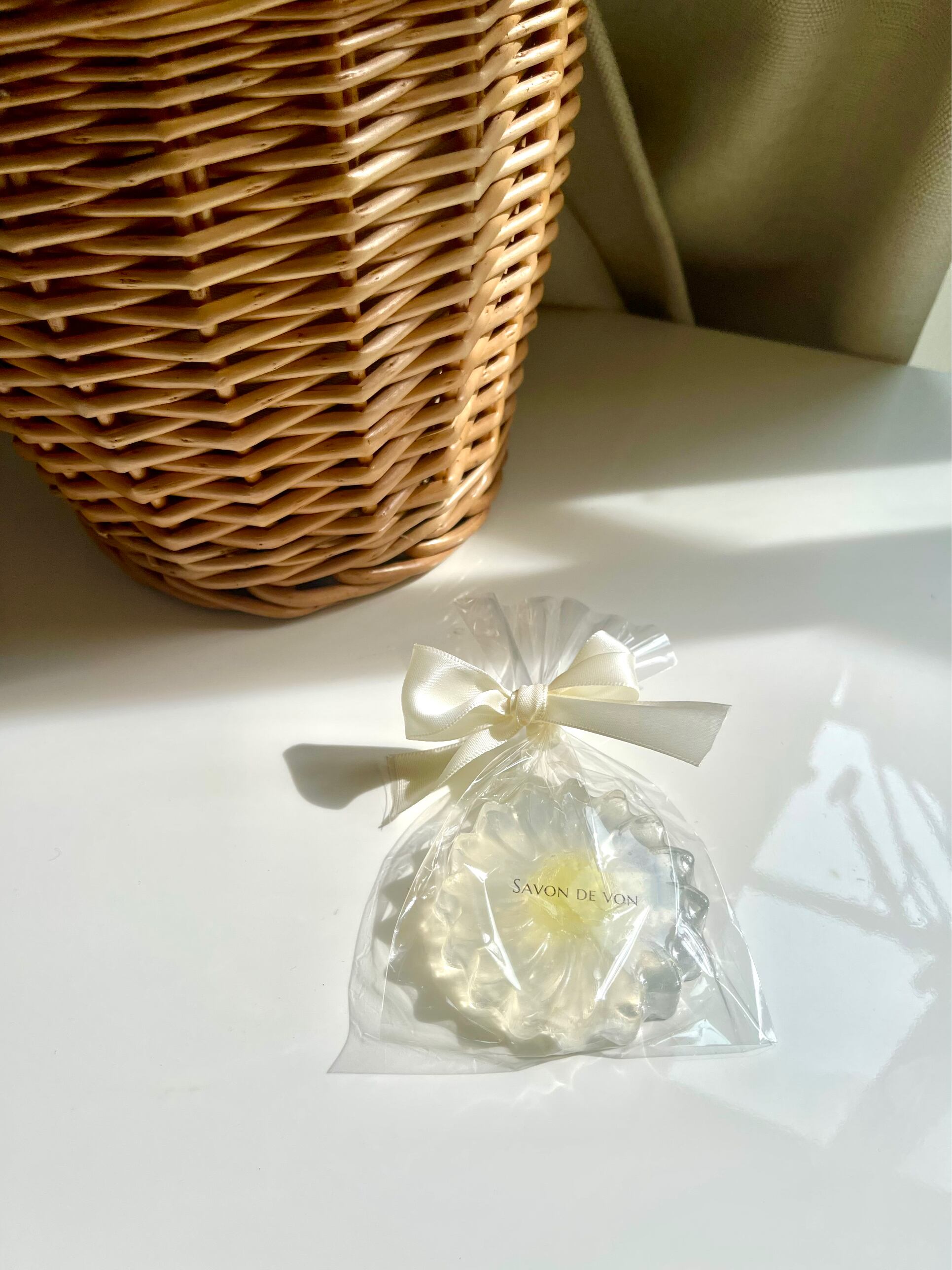 シンプルながら透明度の高い美しさが際立つ、お花の形の石鹸です。