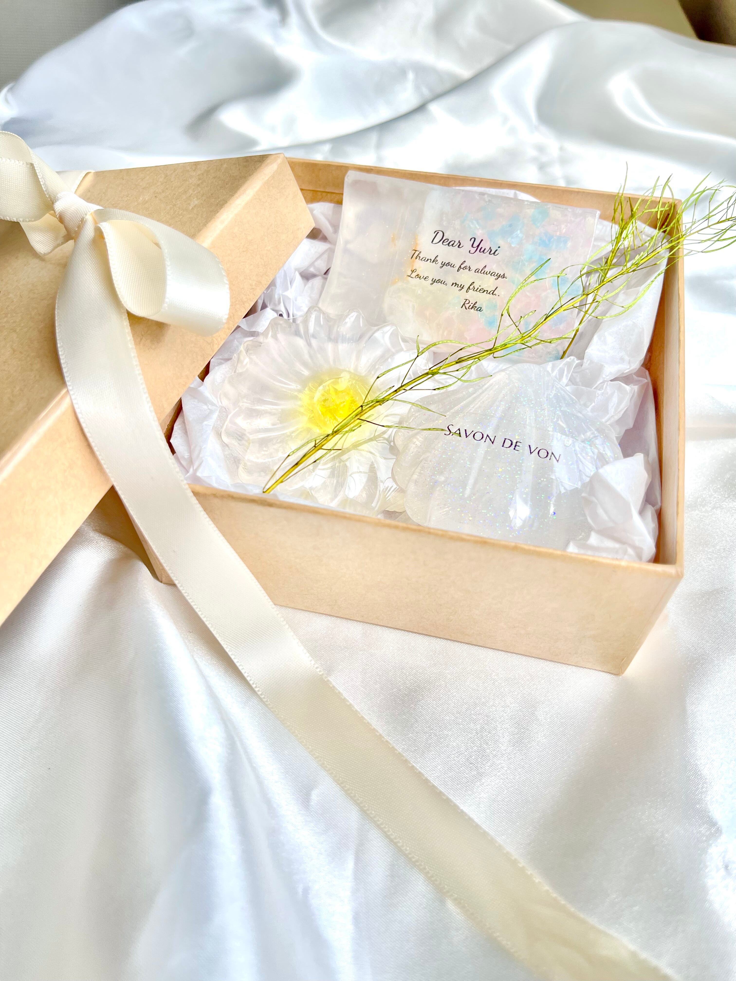 置くだけで香り、水に濡れ香り、とっても癒やされる他にない「香水」のような石鹸で、使う度に香りが広がります。