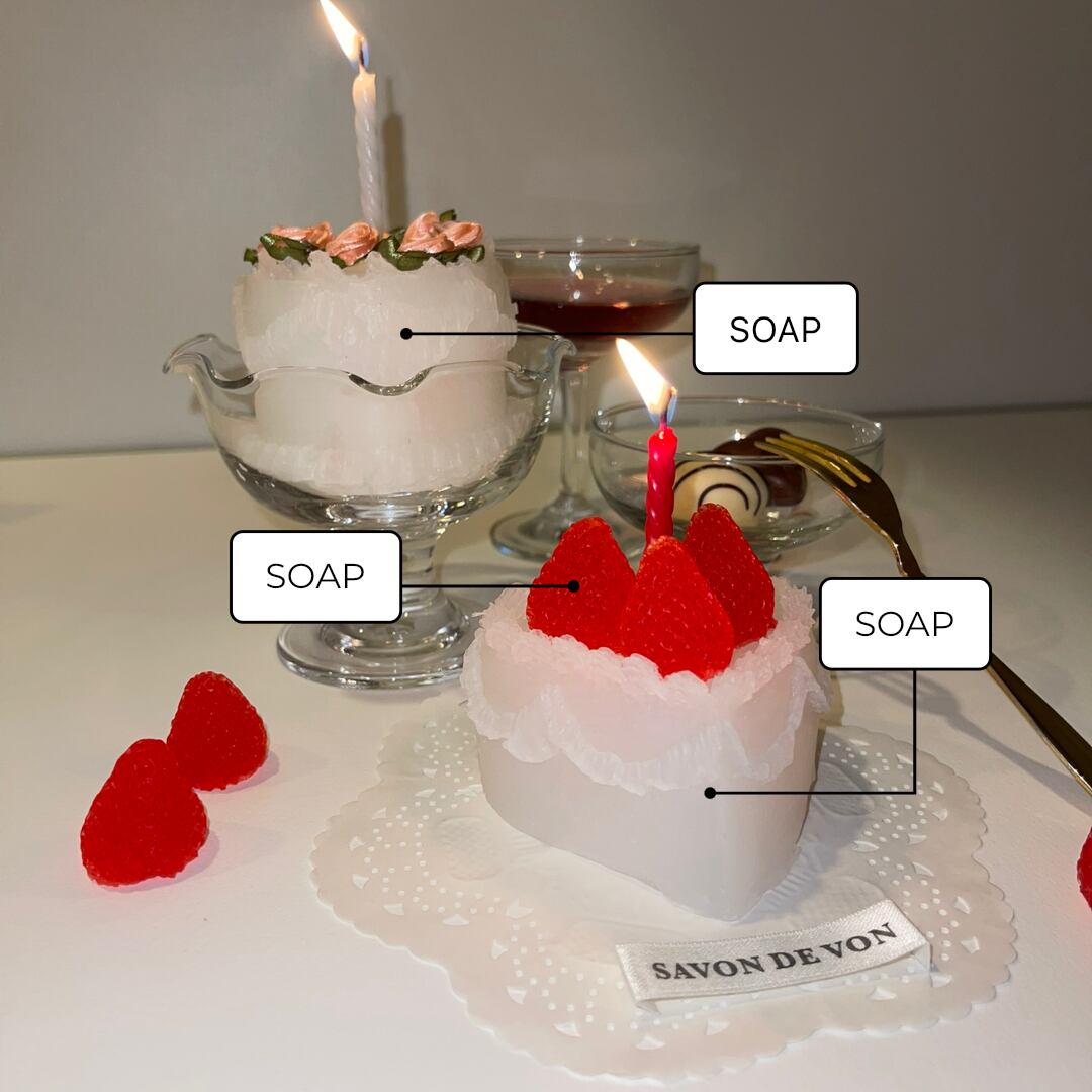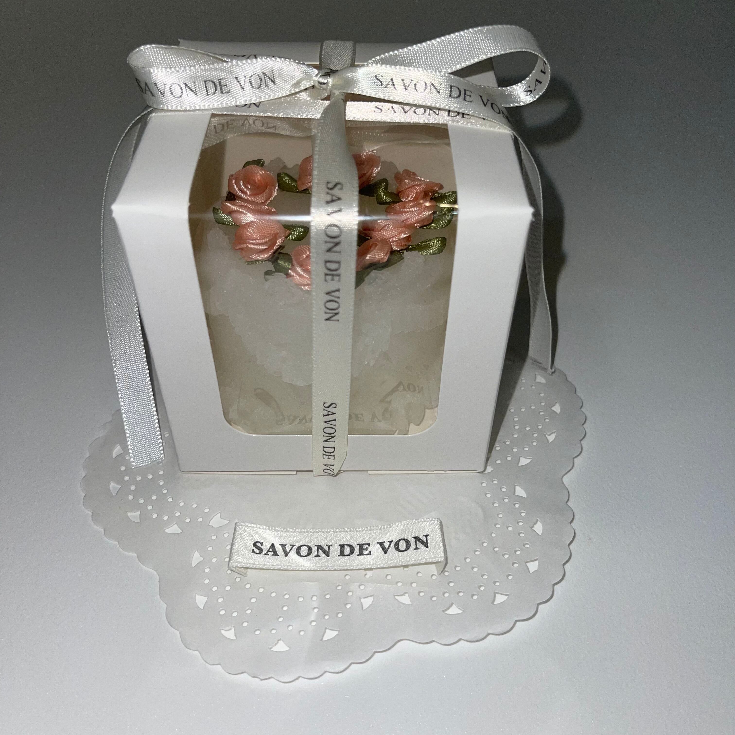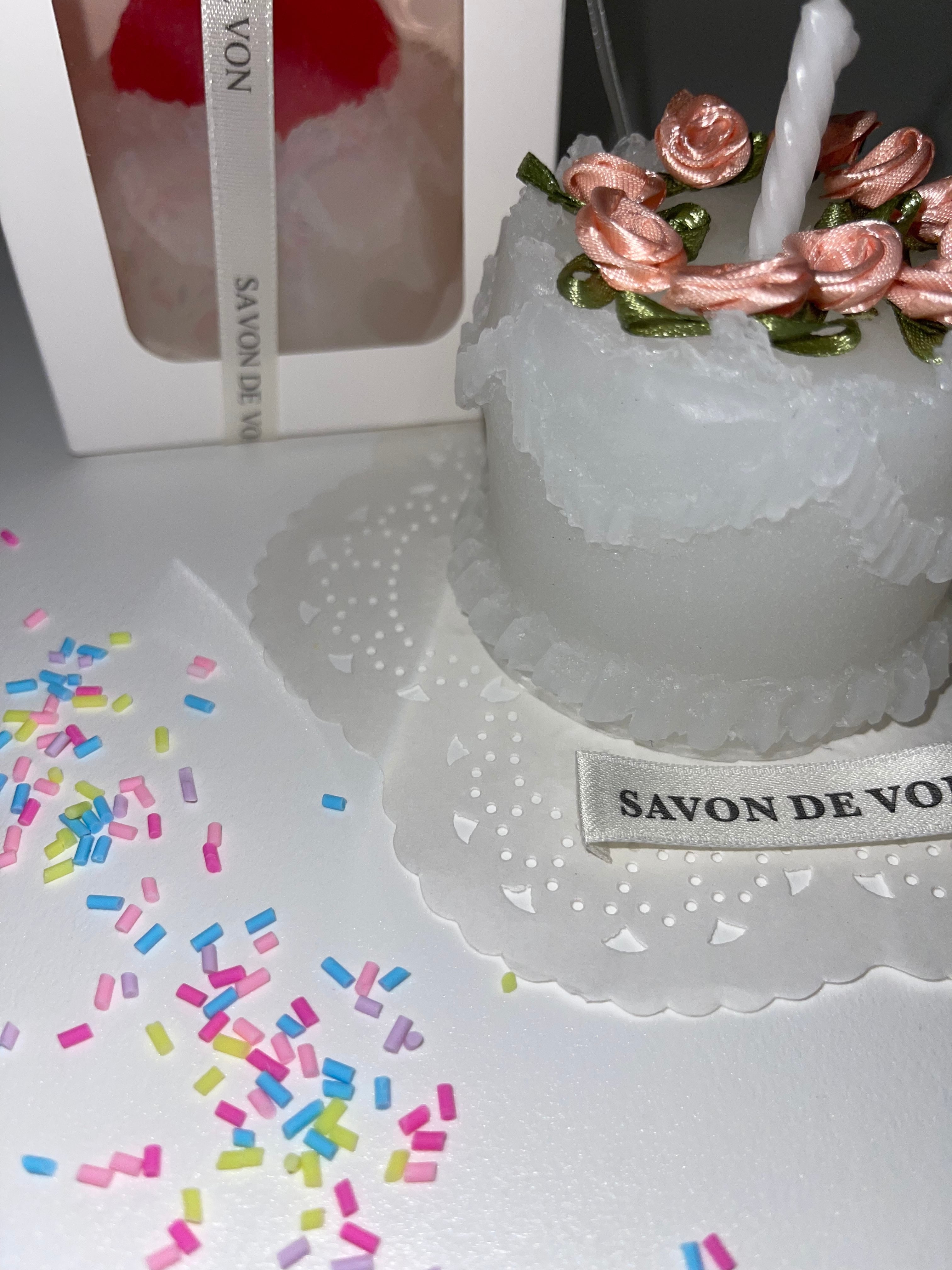 発送はケーキの石鹸,キャンドル,箱とリボンになります。